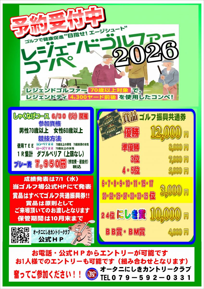 『レジェンドゴルファーコンペ2026』今年もやりますよ!